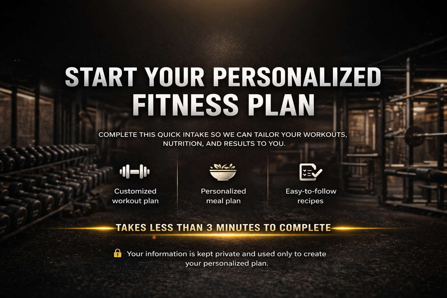 Answer a few quick questions so we can build your custom workout & nutrition plan.